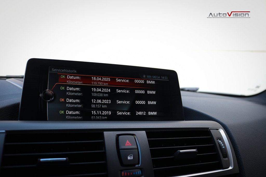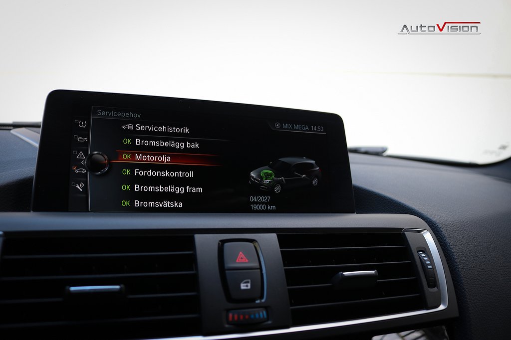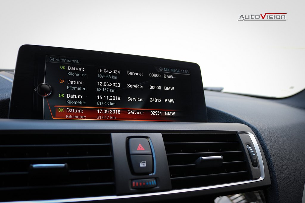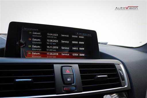Utrustad med bla: Navigation Professional, Harman Kardon Sound system, Alpinvit, Mocca inredning med blå sömmar, Automatisk sportväxellåda med paddlar, LED strålkastare, Mocca ratt, M-Sport bromsar, Variabel sportstyrning, Comfort Access system (Nyckelfria dörrar & start), Stolsvärme fram, PDC sensorer bak, Farthållare, Klimatanläggning, Trådlös laddning, Utökat mätarhus, Highgloss Shadowline, Svart innertak, Tonade rutor och mer därtill.