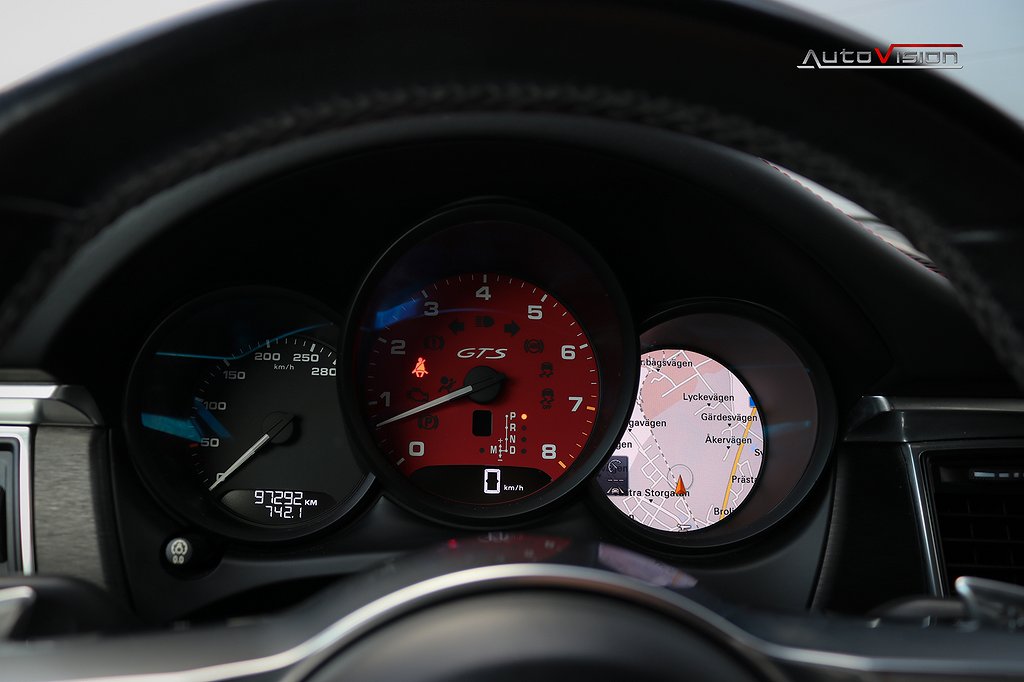 Utrustad med bla Navigation (PCM), Backkamera / 360 kamera vy, Luftfjädring (PASM), Dragkrok elektrisk infällbar, El bagage, Sport Chrono, 21" RS Spyder Design med MS däck, BOSE Surround Sound System, Power Steering Plus, 7-stegad automatväxellåda, Fyrhjulsdrift, GTS, Sportavgassystem, LED-strålkastare ink Porsche Dynamic Light System Plus (PDLS Plus), Bränslevärmare, Rödlackerade bromsok, Aluminiumpaket svart, Aluminium sport-paket, Instrumenttavla i rött, Läder/ Alcantara inredning i svart med röda sömmar, Röda bälten, Farthållare, 3-zons climatronic, Elinställbar förarstol med minne Driver memory package, Filbytesvarning, Sportsäte GTS, Elinställbara backspeglar, AUX & USB, Däcktryckskontroll, Sätesvärme fram, Strålkastspolare, Regnsensor och mer därtill.